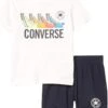 - Add a pop of color to their school style with the Converse® Kids Cropped Foil Graphic Hoodie with brand graphic detail.